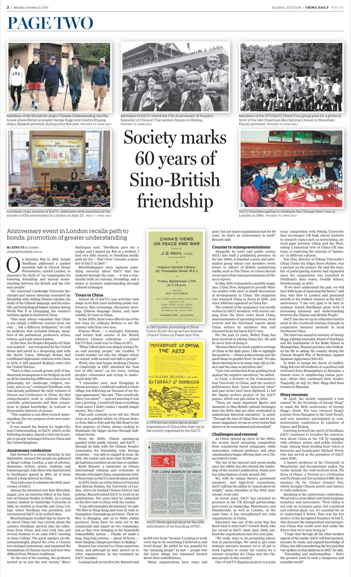 The Society for Anglo-Chinese Understanding (SACU) is a wholely voluntary body which has been actively promoting understanding between the British and Chinese people since 1965.